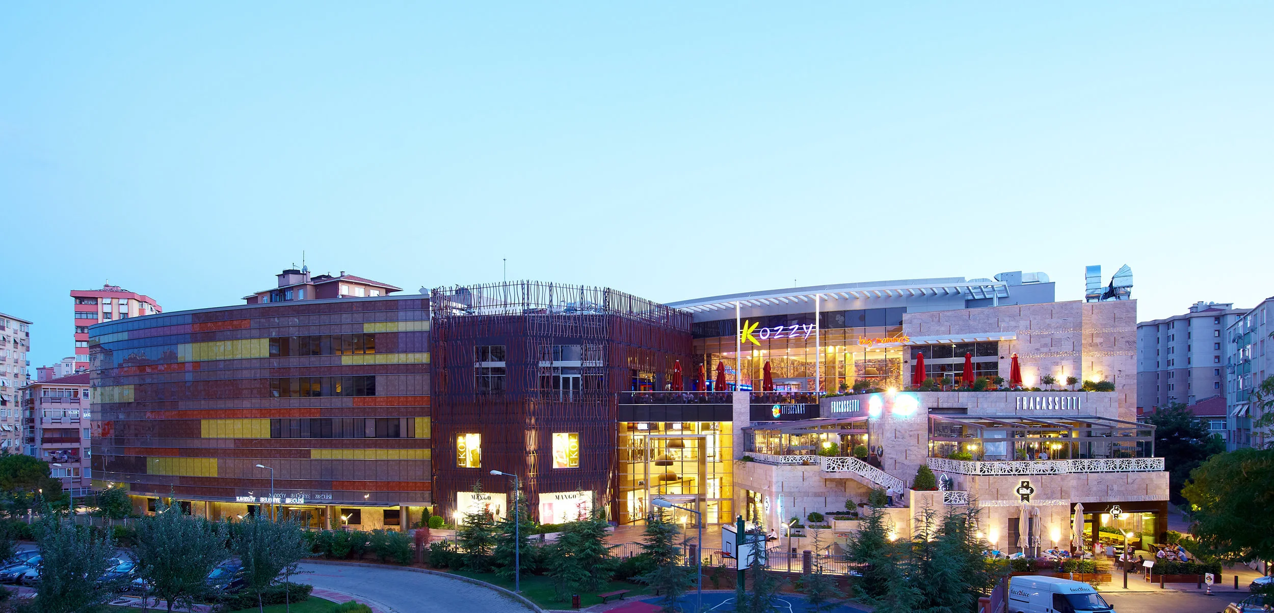 Kozzy is an enclosed shopping center in a highly dense residential neighborhood in Istanbul. Its compact size spans 157,000 square feet and combines 65 international and domestic retailers, indoor/outdoor restaurants, a 400-seat performing arts theater and art exhibition center, a nine-screen cinema, a grocery store and a 260-space underground parking garage.